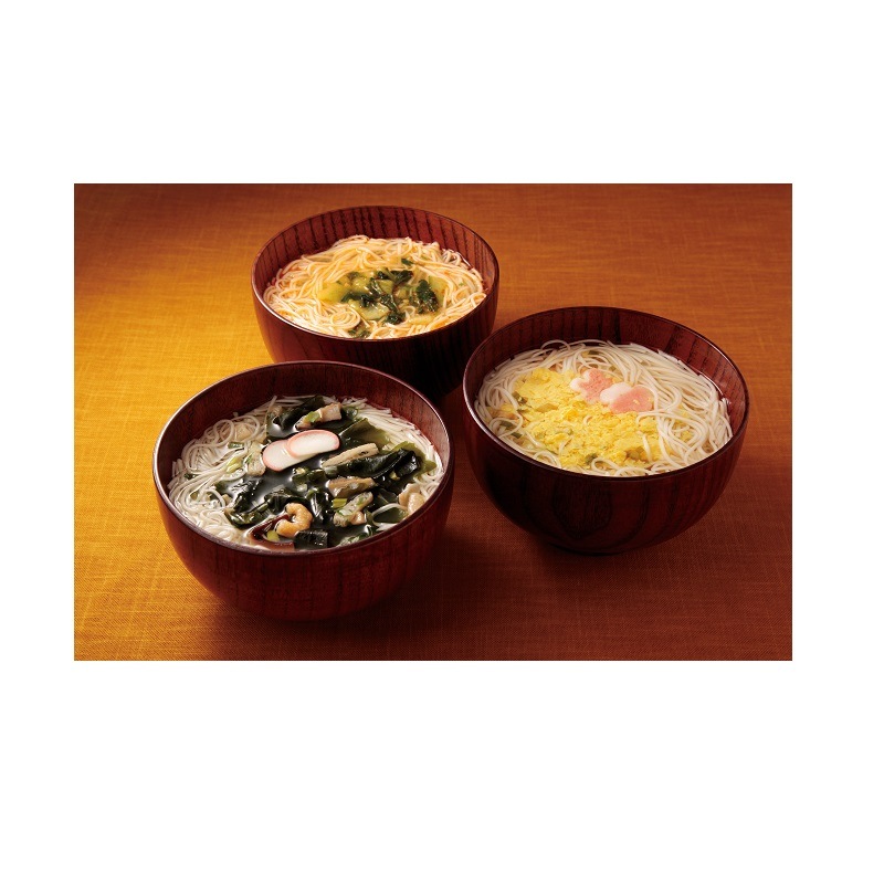 フリーズドライした素麺は3分待っていただくだけでまるでゆがきたてのような食感です。