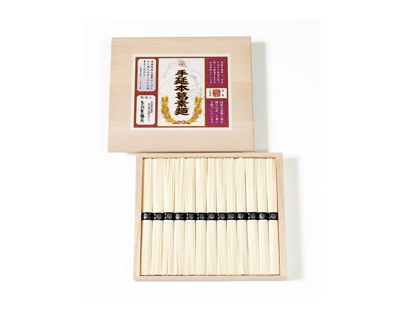 650g 木箱入り 賞味期間 2年 国産小麦に本葛を加え、丁寧に手延べ致しました。葛入りならではのツルツルとした喉越しと、手延べによるコシの強さが自慢です。 【商品の見た目】 縦20.5cm×横24cm×高さ3.8cm、重量は約750gです。 木箱に入っていますので、重厚感もありながら価格と量目のバランスのとれた商品になっています。